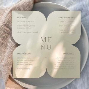 O ideal é fazer a encomenda da papelaria complementar cerca de 4 a 6 semanas antes do casamento. Assim garantimos tempo suficiente para personalizar tudo com base nas escolhas finais (como ementa, número de mesas, nomes dos convidados, etc.) e produzir com calma e com o cuidado que a ocasião exige.