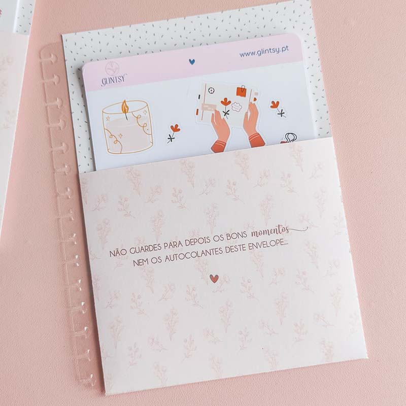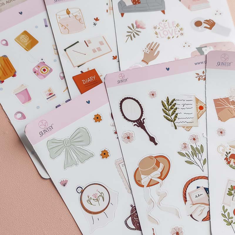 Perfeitos para decorar agendas, planners, cadernos ou bullet journals, estes autocolantes ajudam a organizar tarefas e compromissos com estilo. Cada cartela foi desenhada e produzida à mão em Portugal, com um cuidado especial nos detalhes e ilustrações únicas que refletem a essência da Glintsy.